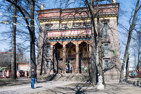 Dai giardinetti sulla prospettiva Primorskij si sente il suono delle ruote della preghiera, strumento di preghiera buddista usato dai tibetani. Qui si trova il tempio buddista più a Nord del mondo. Il datsan tibetano arricchito da elementi di art noveau venne costruito nel 1915 su iniziativa del Dalai Lama che in quel periodo intesseva con grande zelo rapporti diplomatici con l’Impero russo sperando nell’appoggio dello “zar bianco” in caso di espansione da parte dell’Inghilterra.