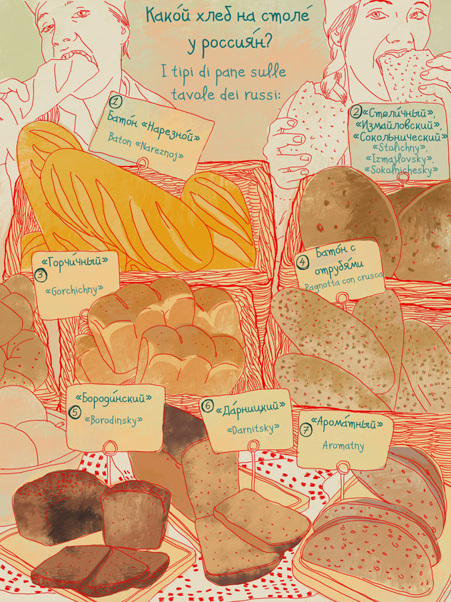 Gorchichnyj (gorchitsa in russo significa senape): pane a base di farina di frumento con l’aggiunta di semi di senape o olio di senape, grazie ai quali la soffice mollica assume un colore giallastro.