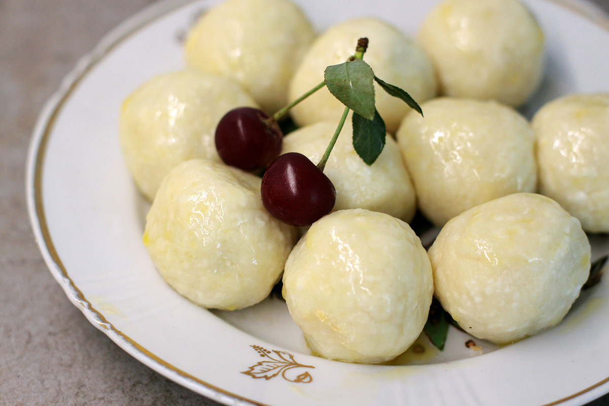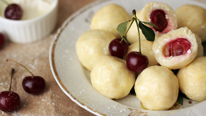 Potrete sostituire il ripieno con qualsiasi altro ingrediente (preferibilmente dolce); personalmente, quello a base di ciliegia è il mio preferito, visto che crea un delizioso contrasto tra la pasta leggermente dolce del tvorog e il sapore dolce e acidulo delle ciliegie. Proviamo?