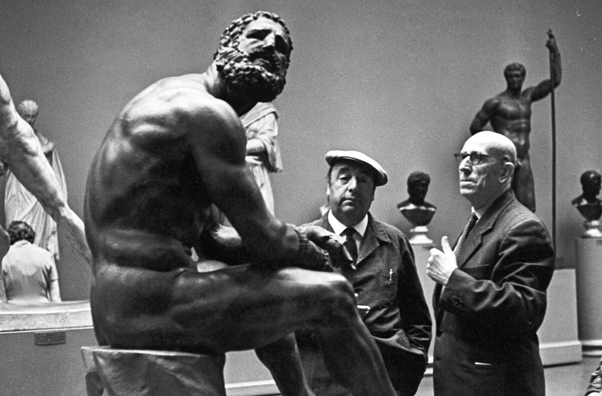 Da sinistra a destra: il poeta cileno Pablo Neruda e lo scultore spagnolo Alberto Sánchez in una delle sale del Museo Statale di Belle Arti Pushkin di Mosca,1962