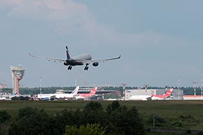 L'aereo Aeroflot in fase di atterraggio all'aeroporto moscovita di Sheremetevo, a bordo del quale c'era la talpa del Datagate Edward Snowden, che fa tappa nella capitale russa prima di raggiungere Cuba e il Venezuela, come riferisce Interfax (Foto: Reuters/Tatyana Makeyeva)