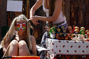 Una partecipante al Festival "Il mondo della Siberia": tre giorni all'aperto di musica folk e artigianato a Shushenskoe, 480 chilometri a Sud della città siberiana di Krasnoyarsk. Sono presenti artisti da 15 Paesi, tra cui Italia, Svizzera, India, Francia, Brasile, Thailandia, Spagna, Cile, Danimarca, Ecuador (Foto: Reuters/Ilya Naymushin)