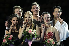 Nella gara di danza su ghiaccio degli Europei di pattinaggio artistico, a Zagabria, l'oro è andato alla coppia russa formata da Ekaterina Bobrova e Dmitri Soloviev, che hanno preceduto di pochissimo, ovvero di soli 0,11 punti, i connazionali Elena Ilinykh e Nikita Katsalapov. Gli azzurri Anna Cappellini e Luca Lanotte si sono piazzati al terzo posto (Foto: Reuters)