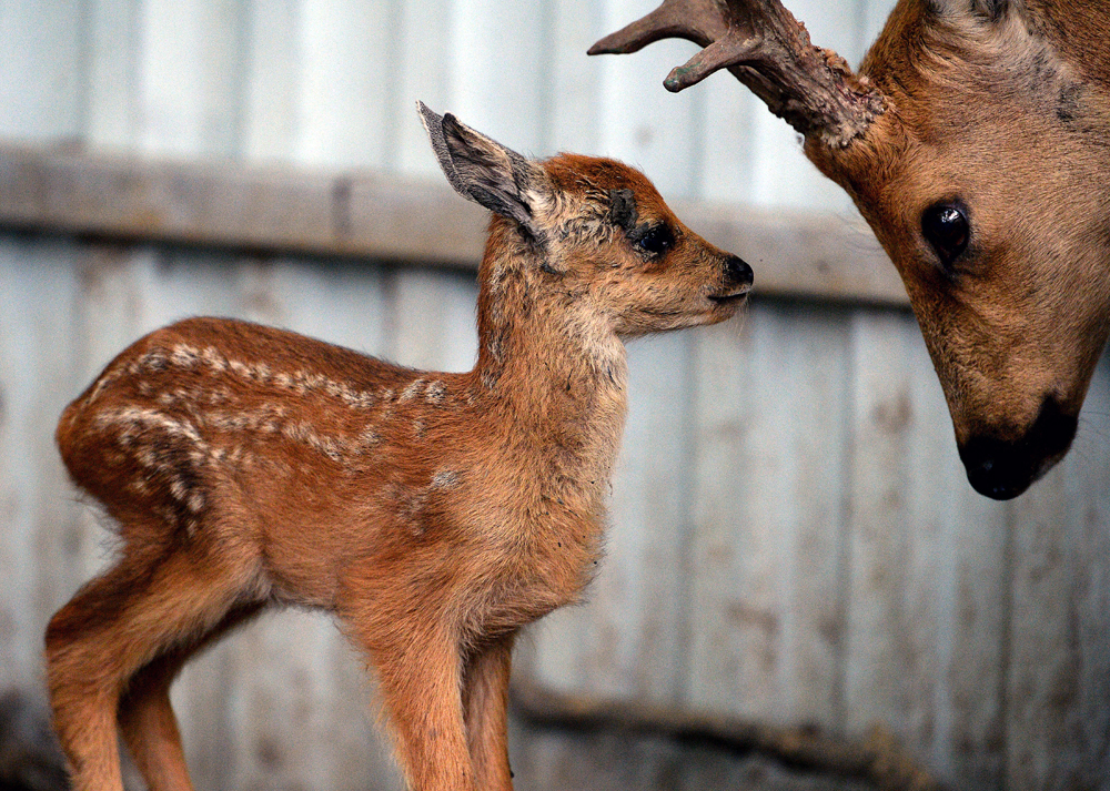 Un cucciolo di capriolo nello zoo di Vladivostok