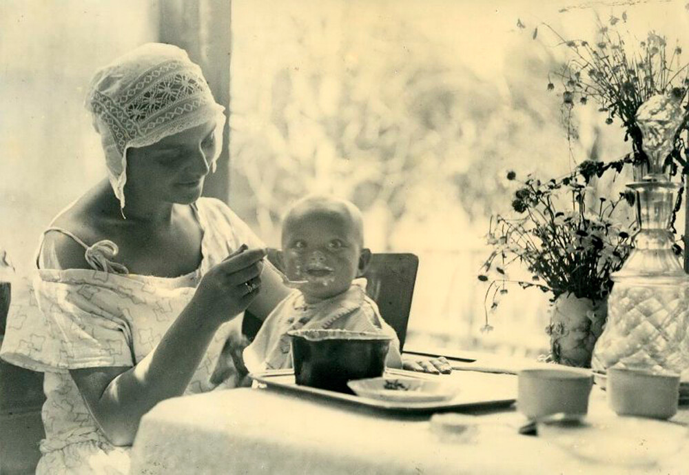 La propaganda sovietica prestava grande attenzione all’educazione dei bambini, alla loro cura e alla loro alimentazione.
